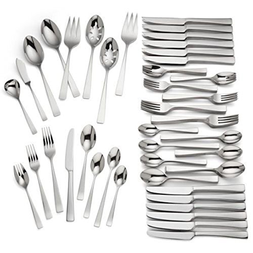 - Includes: twelve 8-piece place settings, sugar spoon, butter knife, 4 condiment spoons, and 6 serving pieces