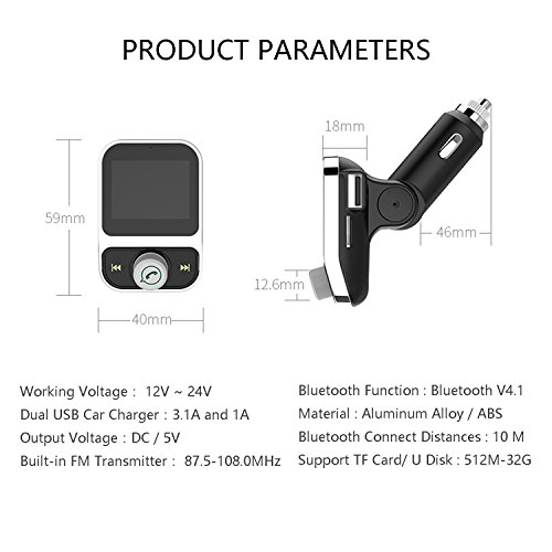 The newest updated version multifunctional wireless in-car bluetooth fm transmitter:bluetooth 4.1 connect 10M distance+Dual usb car charger +FM transmitter + MP3 player /GPS + bluetooth hands-free calling + Car battery low voltage alarm