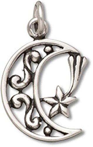 -. Title : Sterling Silver Filigree Waning Crescent Moon Dangle Charm Bead For Bead Charm Bracelet With Mystical Shooting Star