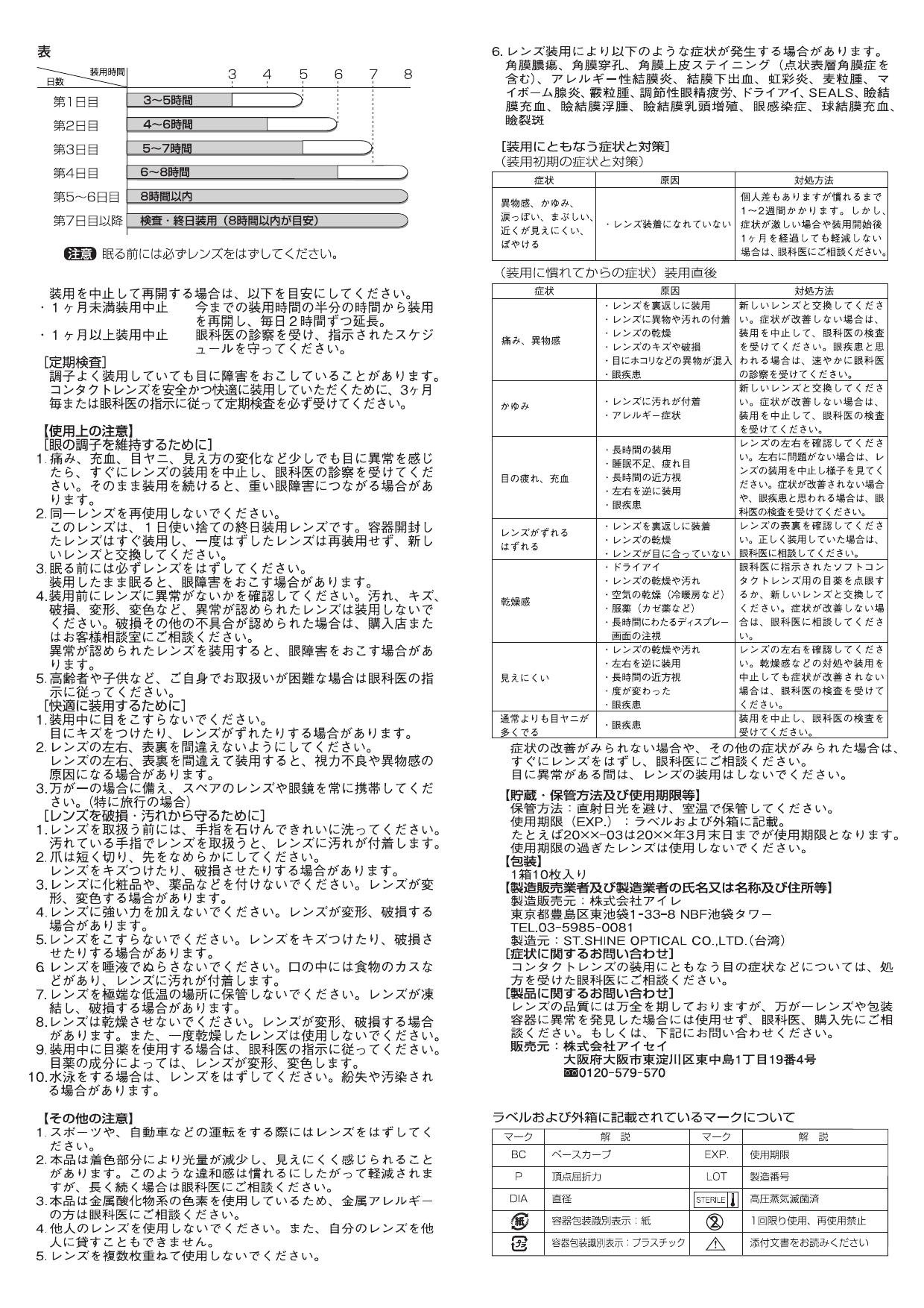 ● If you feel any abnormality, stop wearing and please take the examination of the ophthalmologist immediately.
