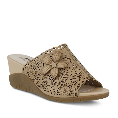 Studio : Spring Step Publisher : Spring Step Binding : Apparel Product Description Brim with confidence in the women's Spring Step Togo slide sandal. Designed with leather upper, this sandal comes with gorgeous floral cutouts and laser etching details. With its soft leather lining it offers excellent breathability while its padded memory foam leather insole pampers your foot with each step. Moreover, its TPR outsole with wedge heel lends secure footing on slick and dry surfaces. Uplift your style with the women's Spring Step Togo slide sandal. 0
