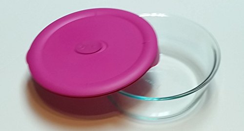 -. Title : Pyrex Round Dish and Fuchsia venting lid 3 qt