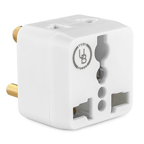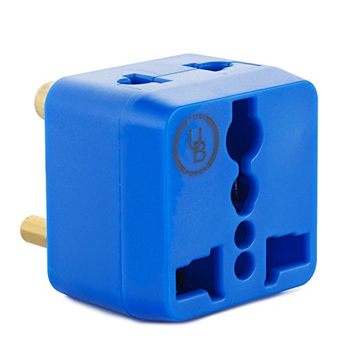 Yubi Power 2 in 1 Universal Travel Adapter with 2 Universal Outlets - Built in Surge Protector - 3 Pack - Black White Blue - Type D This Yubi Power travel plug adapter has 2 universal outlets that allow you to plug in most plug types from around the world, excluding the larger South African type M.