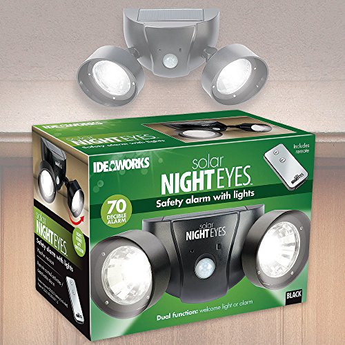 -. Binding : Electronics -. Brand : U.S. Patrol Solar Night Eyes -. EAN : 0017874021598 -. Feature : Solar-powered spotlight adds instant security without wiring! / Super-bright LED lights turn on when motion is detected up to feet away / Emits a loud, piercing 70-decibel sound / Built-in solar panels power lights at night with no battery to change / Includes remote to activate and deactivate alarm -. Label : Jobar International -. Manufacturer : Jobar International -. Model : 8276176 -. MPN : JB7666 -. PackageQuantity : 1 -. PartNumber : JB7666 -. ProductGroup : Photography -. ProductTypeName : SURVEILANCE_SYSTEMS -. Publisher : Jobar International -. Studio : Jobar International -. Title : U.S. Patrol Solar Night Eyes Alarm Light -. UPC : 017874021598