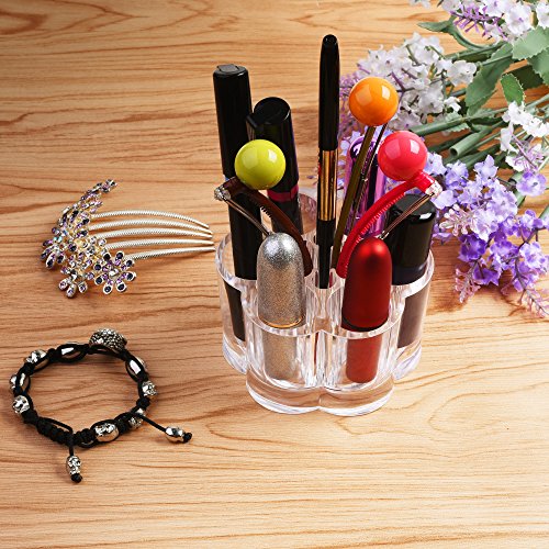 Kloud City 12 Slots Acrylic Makeup Organizer Flower Shape Cosmetic Stand Holder for Lipstick Eyebrow Pencil Nail Polish Display Case Clear