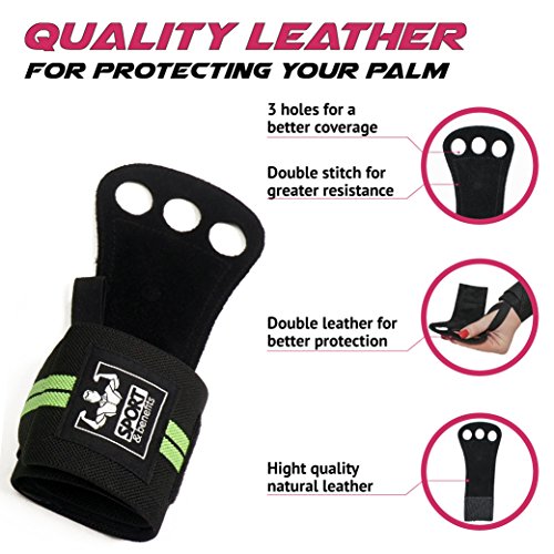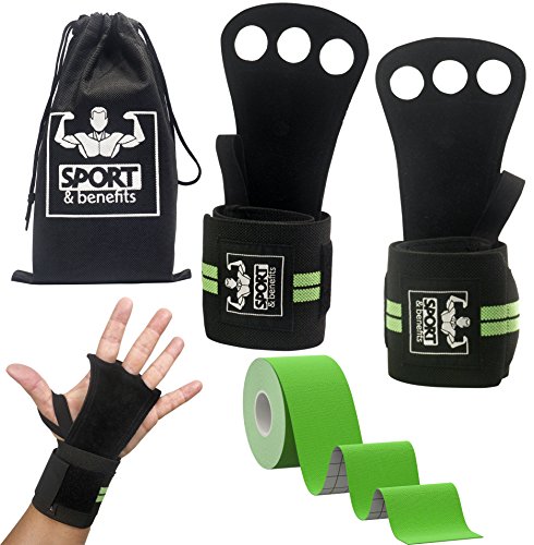 Performance without Compromises Imagine you could finish your WOD without blisters and palm rips! With Sports and Benefits Crossfit Hand Grips this is not only possible, but achievable. Made of double sided cowhide leather, the gymnastics grips are perfect for pull-ups, deadlifts, snatches, jerks, muscle ups, dips, powerlifting, and thrusters. The weight lifting gloves are designed for you. The bar grips for gymnastics girls are ideal even for you. Featuring double stitching and wide finger holes (0.86″), the wod gloves: - allow you to increase the intensity of your WOD