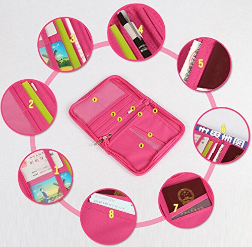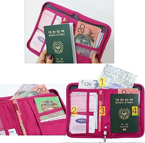 Travel Trip Passport Credit ID Card Cash Wallet Purse Holder Case Document Bag Doubtless Bay (Rose-carmine)