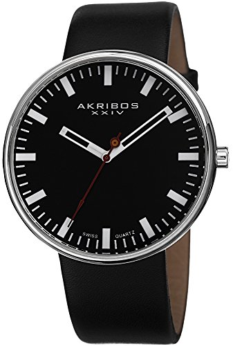 -. Title : Akribos XXIV Men's AK733SSB Essential Swiss Quartz Silver-tone Stainless Steel Black Leather Strap Watch