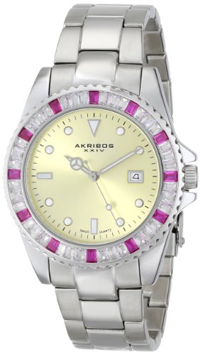 -. Title : Akribos XXIV Unisex AK702RD Swiss Quartz Red Crystal Stainless Steel Bracelet Watch