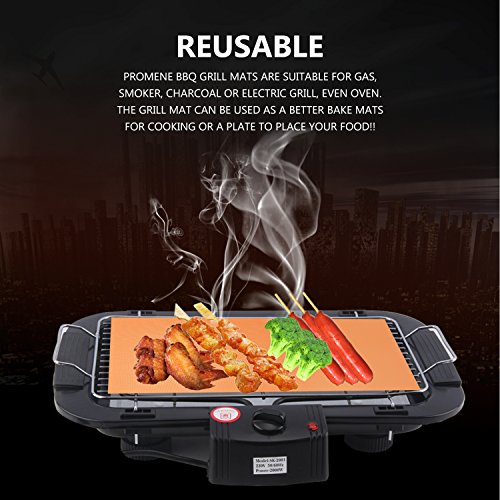 - ● PERFECT TICKNESSES- Thicker does not mean better. We tested multiple thicknesses before developing our mats. PROMENE grill mat is thin enough to leave grill marks and flavor intact, yet thick enough to provide ultimate heat resistance and durability. These mats are heat resistant up to 500 degrees Fahrenheit! 4 mats is all you'll ever need. NEVER buy another grill mat again!
