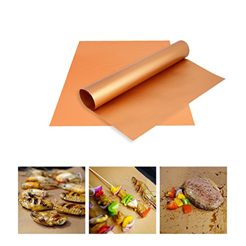 PROMENE - Copper Grill Mat 4 pcs - 100% Non-stick BBQ Grill Mats - Golden Grill Mats and Bake Mats (4pcs)