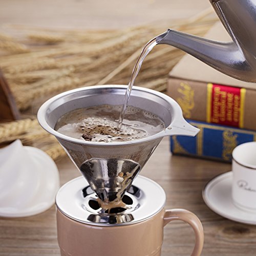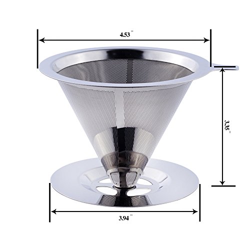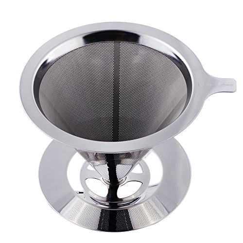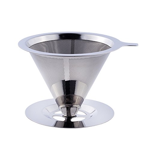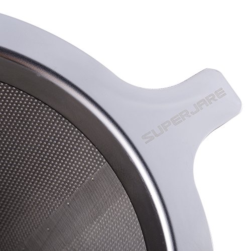 -. Brand : SUPERJARE -. Color : Stainless Steel -. Feature : Coffee Lovers' Choice - The perfect alternative to disposable paper filters, which absorb essential oils from your beans and grounds and rob your coffee of essential oils and nutrients. / Double Filter - Made from 18/8 Stainless Steel, which is of finest quality and highly durable, and can withstand high heats. No Plastic, No Paper. The Double Filter stops large particles and debris from marring your coffee experience. / Multi-purpose und Portable - Small, light and potable, so it is easy to take to go camping, hiking, backpacking etc. Easy to use. Fits on almost all sorts of coffee mugs, cups, drip pots or trays. For exact dimensions pls refer to the images / Reusable and easy to clean - The filter cone consists of tiny laser-cut holes and an ultra fine stainless steel mesh on top. ECO-FRIENDLY and sustainable. No more running out of paper filters. Cleaning is less hassle. Simply rinse well with warm water, or dishwasher is also safe. / A wonderful Gift - The Superjare fine craftsmanship makes it the perfect gift for all the coffee lovers in your life. -. Label : Superjare -. Manufacturer : Superjare -. PackageQuantity : 1 -. ProductGroup : Kitchen -. ProductTypeName : KITCHEN -. Publisher : Superjare -. Studio : Superjare -. Title : Superjare 1-2 Cups Reusable Stainless Steel Coffee Dripper 30105M
