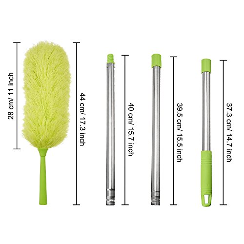 -. Title : Sumind 153 cm Fluffy Microfiber Cleaning Duster, Static Bendable Green Duster with Detachable Long Pole for Home, Office and Cars