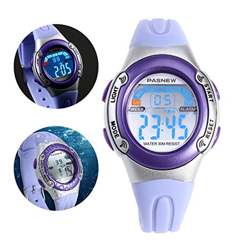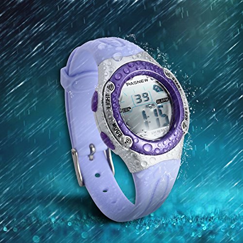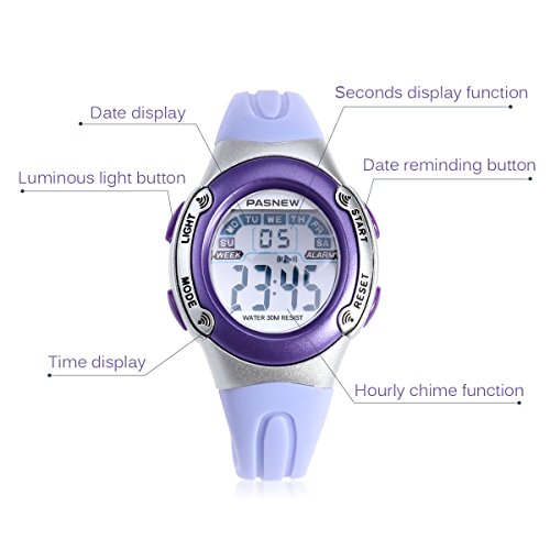 -. Title : NICERIO NICERIO PSE-226 Waterproof Children Boys Girls LED Digital Sports Watch with Date /Alarm /Stopwatch (Light Purple)