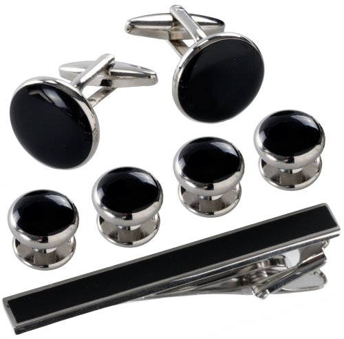 Studio : Quality Choices Publisher : Quality Choices Binding : Jewelry Product Description Packed in a chic looking black velvety box with a checkered cover, this Cufflinks and Studs Set comes with a free tie clip. All seven pieces are fashioned from only the highest quality surgical metal grade stainless steel, glossed to the utmost level for that everlasting shine. This set will look amazing with just about any formal attire. The accompanying tie clip, which is an add-on, sports a curve on its surface for that extraordinary look. The tie clip is functional in keeping the tie neatly tucked underneath your blazer or jacket and attractive on the top to draw the attention of onlookers for a split second towards its glazed metallic surface. Getting dressed perfectly for any occasion requires those tiny accessories that never seem to fit right. This set of black body with shiny silver cufflinks along with a free tie clip goes well over everything, be it a black tuxedo affair or a sober Sunday brunch gathering with friends. It's got that high class appeal without the low price tag, tell-tale signs. No one will ever know that this set came for so low of a price. Everyone is simply going to go on about how well it fits into your attire. Go ahead and wear your heart out, fashion the cufflinks with white shirt and black tuxedos. Plus they are large enough to never go missing. Wear your cufflinks without ever having to worry about misplacing them again. 0