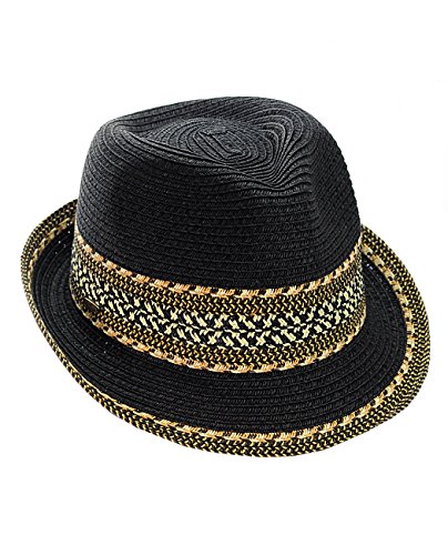 -. Title : NYfashion101 Women's Multicolor Weaved Band & Brim Summer Trilby Fedora Hat