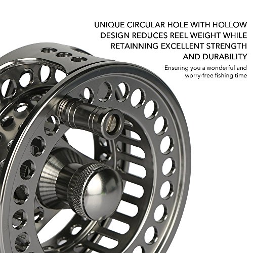 -. Feature : Improved design: High grade precision machined Aluminum CNC frame and stainless steel main shaft with perfect corrosion resistance to ensure long term performance. / Smooth performance: 2+1 ball bearings system, strong drag system and spool release configuration provide smooth consistent performance during the entire drag range. / Aluminum handle: All Aluminum handle provides more comfortable design. / Precision machined brass gear for immediate drag engagement. / This compact ultra-light fly fishing reel comes in two sizes: 5/6, 7/8, there will be a suitable reel for you.