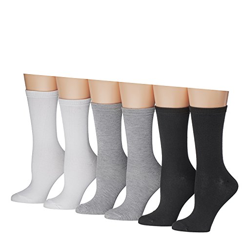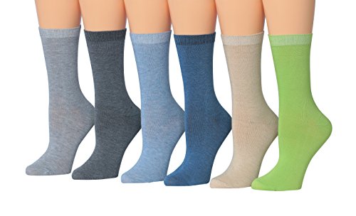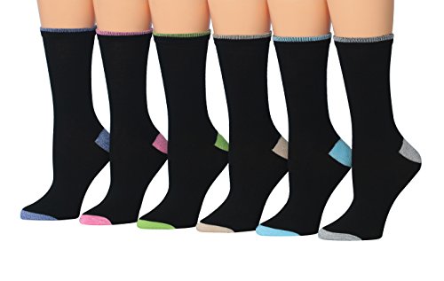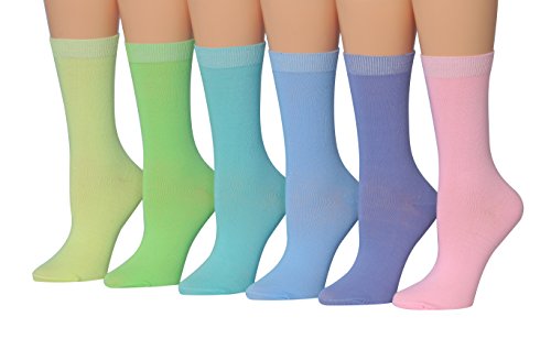 Tipi Toe Women's 6-Pairs Solid Colorful Patterned Crew Socks, (sock size 9-11) Fits shoe size 5-9, WC13A-A