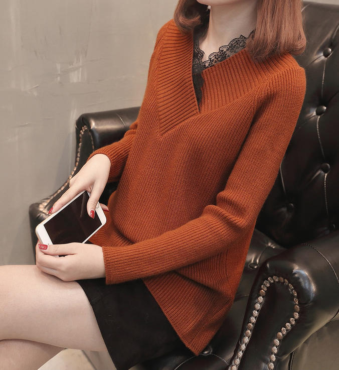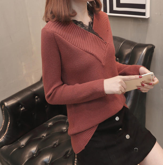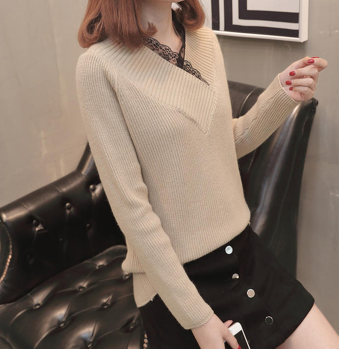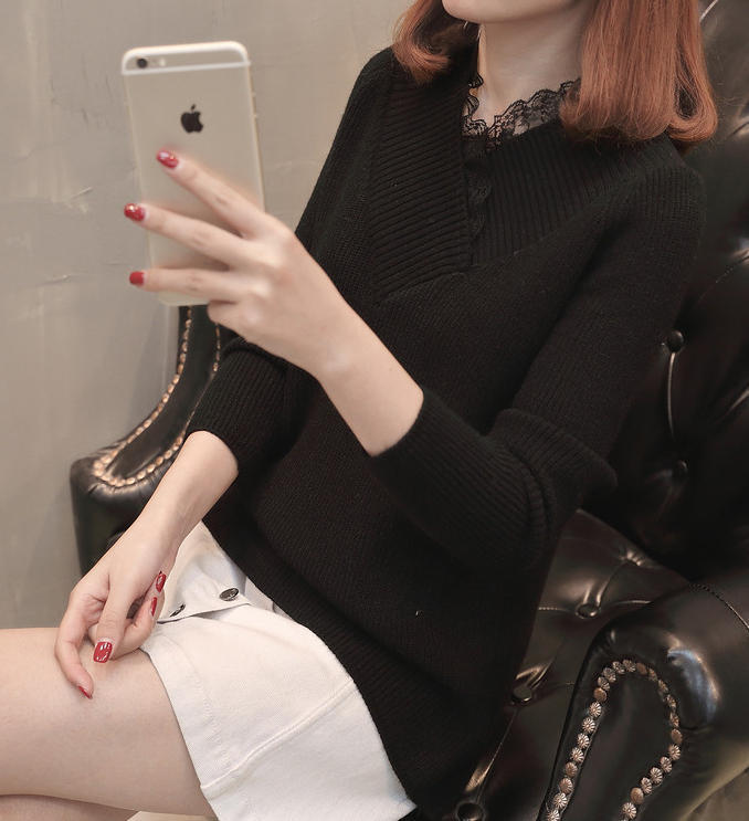 Vネックラインのレースがおしゃれなニット♪