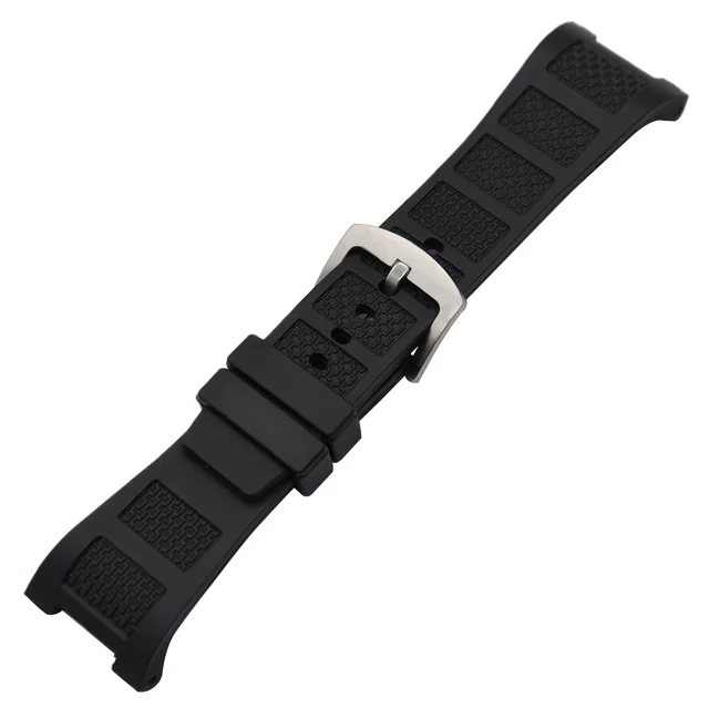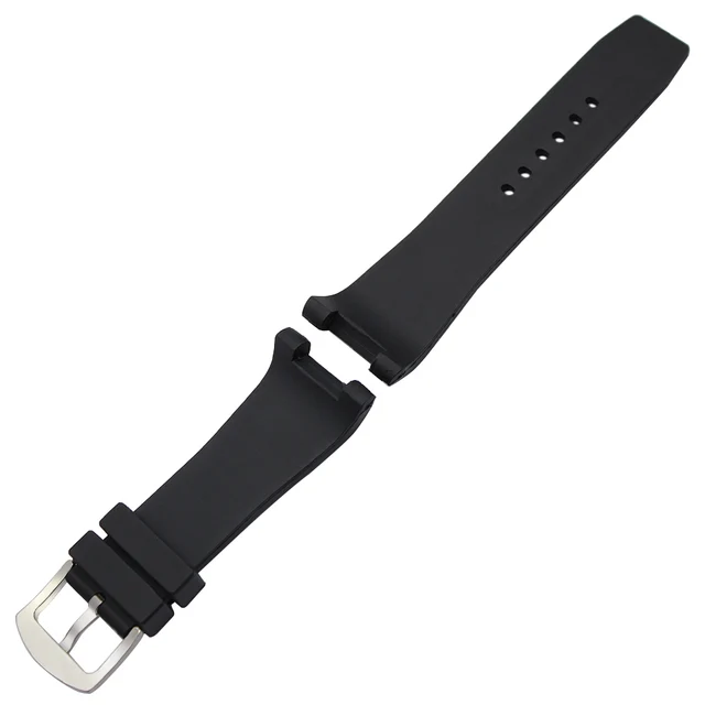 | [해외] 실리콘 고무 손목 30 미리메터 x 16 미리메터 노치 엔드 스트랩 IWC INGENIEU 시계 밴드 스테인레스 스틸 버클 손목 팔찌 블랙 |