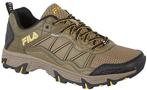 Studio : Fila Publisher : Fila Binding : Apparel Product Description Take your run off road in these durable Fila At Peake Trail shoes. These sneakers were made to tackle any terrain with a lugged rubber traction outsole, synthetic upper, and shock absorbing midsole to keep you comfortable. 0