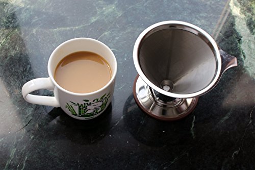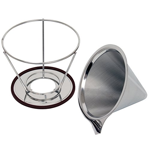 CoZroom Stainless Reusable Steel permanent coffee filters with Cone Pour over Coffee Stand, 2 Cups