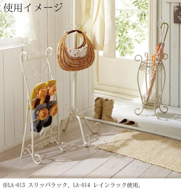 白を基調としたガーリーなスリッパラック。ついついお友達を呼びたくなっちゃうようなお部屋に♪ 製造国:中国 素材・材質:スチール(カラー:アイボリー) 商品サイズ:W280×D200×H750mm 重量:2kg 仕様:収納数:4足 付属品:取扱説明書 ※サプライヤー直送品 ご注文後5~6営業日後の出荷となります【商品名】塩川光明堂 LaLa(ララ) LA-013 スリッパラック