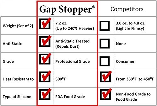 Original Gap Stopper Black, Professional Grade, Heavy 7.2 oz Silicone, Set of 2, Covers Gap between Stove & Countertop