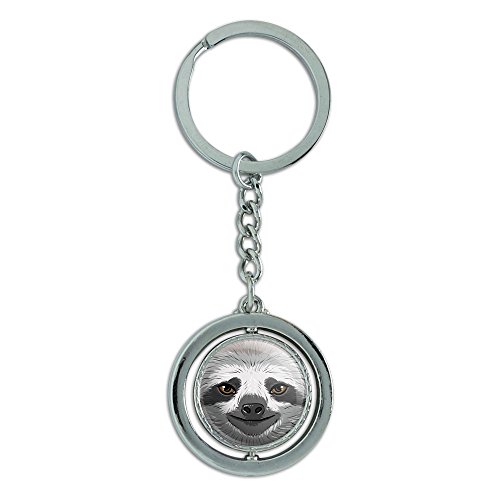 -. Title : Sloth Face Spinning Round Metal Key Chain Keychain Ring