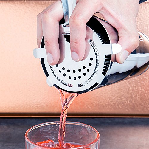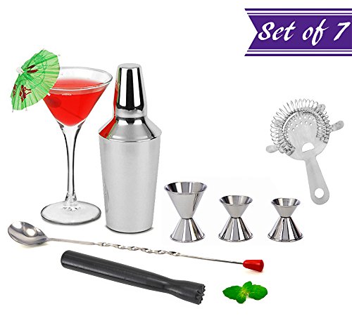-. Feature : AMAZING VALUE: Tezzorio 7 Piece Cocktail Mixing Set includes one professional 16 oz shaker with built-in strainer, three double sizes 1 & 2 oz., 3/4 & 1 1/2 oz., 1/2 & 1 oz measurement Jiggers, one 11 inches twisted bar Mixing Spoon, one 8 inches triangular head Cocktail Muddler plus a 7-Inch Stainless Steel 4-Prong Bar Strainer. / HIGH QUALITY: Tezzorio's Cocktail Set not only looks classy and elegant but also has been designed to last for years to come. Made from the highest quality materials, it is guaranteed not to rust or leak or break! / GREAT VERSATILE: This mixology set is perfect for making cocktail recipes such as Margarita, Cosmopolitan, Long Island Iced Tea, Sour, Apple Martini, Old Fashioned, Daiquiri, Negroni, Manhattan, Fizz, Mai Tai, Sidecar, Bellini Vesper, Paloma, Appletini etc. / SUPERB CONVENIENCE: Simple and Easy to use set that includes basic tools to help you start mixing and is highly recommended for beginners. Experience to find the perfect taste of a large variety of spirits like Tequila, Rum, Aperol, Whiskey, Vodka, and Liqueurs like never before. Our set is certain to be the most used piece of your barware collection! / IDEAL SET TO ENTERTAIN YOUR FRIENDS - Always wanted to impress your friends with delicious cocktails? Then this is the bartender tool of your choice. This setting allows you to create even the most complex drinks easily, in a timely manner without making a mess or poorly mixing the ingredients. Amaze everyone with your mixing skills- get this set Today!!!