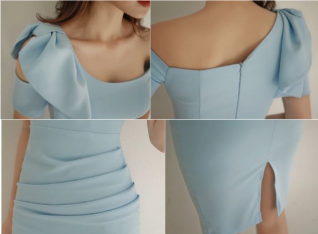 夏らしいカラーのタイトめワンピースです。