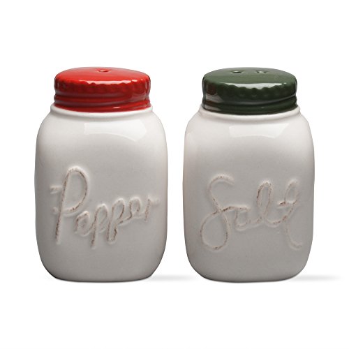 Tag 203871 Vintage Jars Salt & Pepper Shakers (Set of 2), 2.6 x 1.75 x 1.75", White