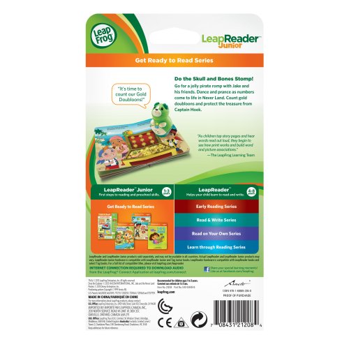 -. Binding : Toy -. Brand : LeapFrog -. Department : baby-boys -. EAN : 0708431212084 -. Feature : Search for buried treasure and count and compare sets of objects with Jake and his pirate friends in this interactive LeapReader Junior board book. / 24+ activities and 150+ audio responses. / Teaches counting objects and number recognition. / Ages 1-3 years. / Works only with Tag Junior and LeapReader Junior Book Pal (sold separately). -. IsAdultProduct : 0 -. ItemPartNumber : 21208 -. Label : Leapfrog -. LegalDisclaimer : clean unmarked pages and cover ships fast -. Manufacturer : Leapfrog -. Model : 21208 -. MPN : 21208 -. PackageQuantity : 1 -. PartNumber : 21208 -. Platform : Windows -. ProductGroup : Toy -. ProductTypeName : TOYS_AND_GAMES -. Publisher : Leapfrog -. Studio : Leapfrog -. Title : LeapFrog LeapReader Junior Book: Disney's Jake and the Never Land Pirates (works with Tag Junior) -. UPC : 708431212084 -. Warranty : 90 day warranty against manufacturer defects