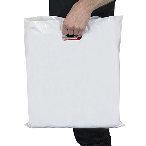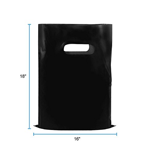 100 BAGS PER ORDER: One hundred count of low-density glossy merchandise bags with sturdy die cut handles -- available in white and black. Each 1.75mil thick bag measures 18" x 16" and reliably holds a wide variety of items for multiple settings, events, and other occasions