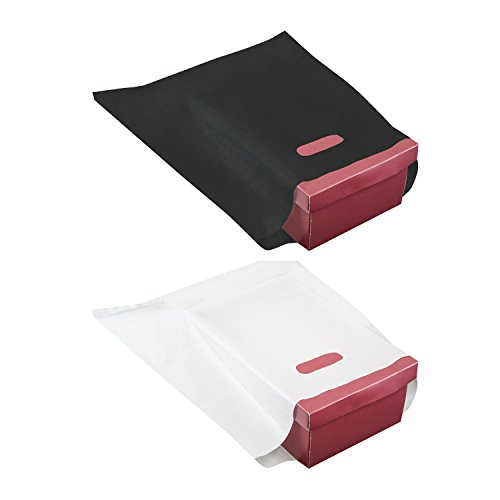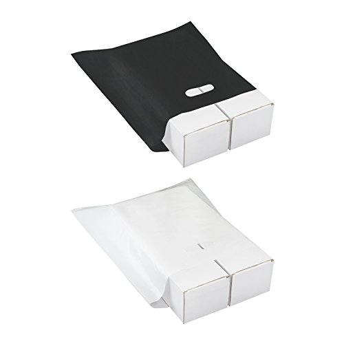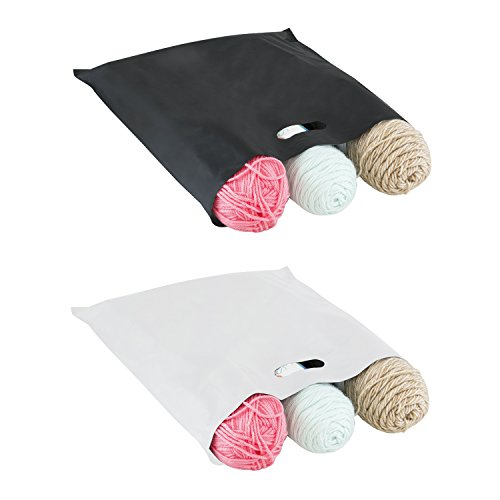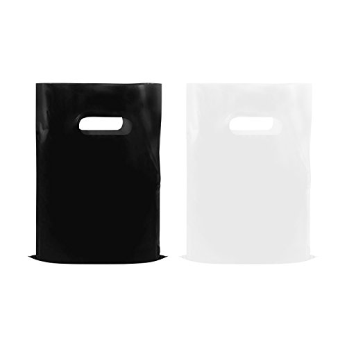 Houseables Merchandise Bags, Retail Shopping Bag, Plastic, 16” x 18”, 100 Pack, 1.75 Mil Thick, Low Density, Glossy, Black And White Color, With Handles, For Stores, Boutiques, Clothes, Books