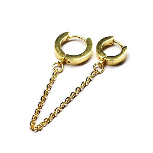 -. Title : 【N2 stone】 ダブルフープチェーンのサージカルステンレスピアス 金色(ゴールド) 1個 18G(約1.0mm) / メンズ&レディース