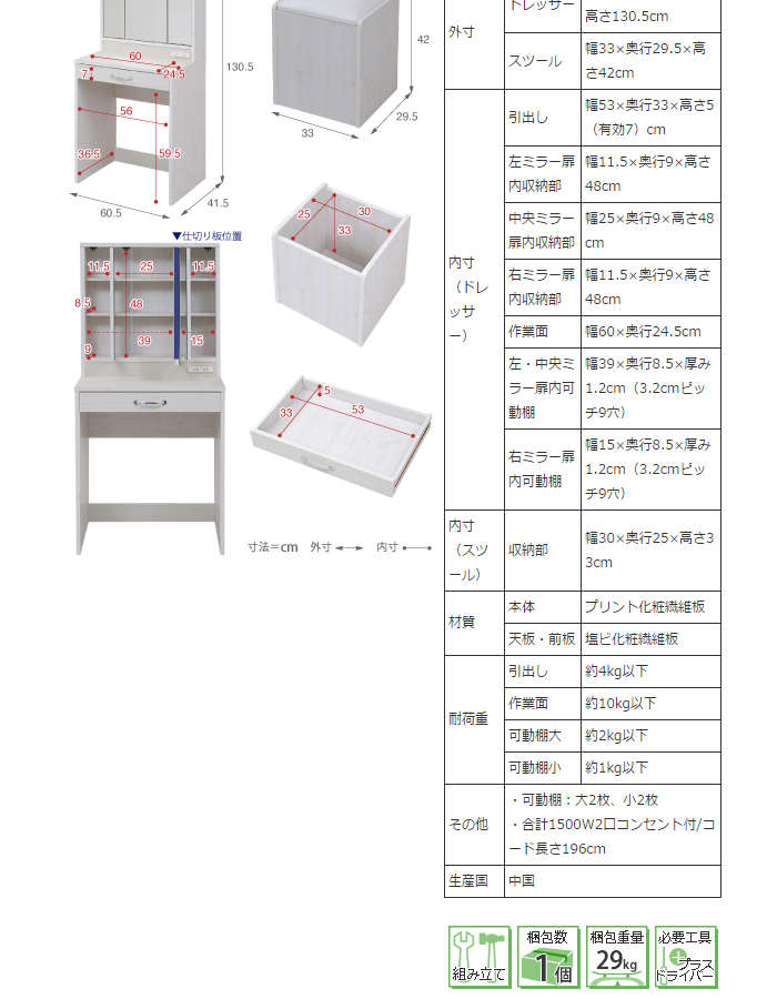 (ドレッサー)幅60.5×奥行41.5×高さ130.5cm
