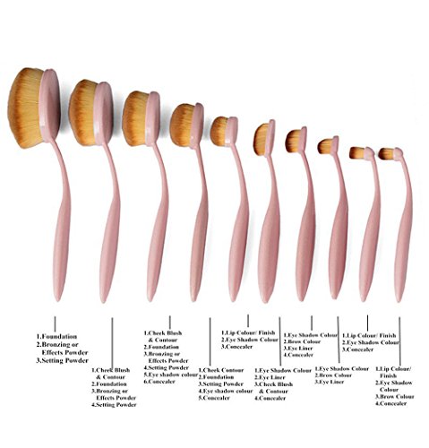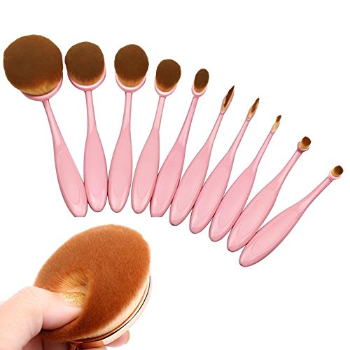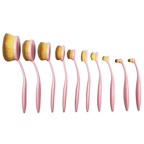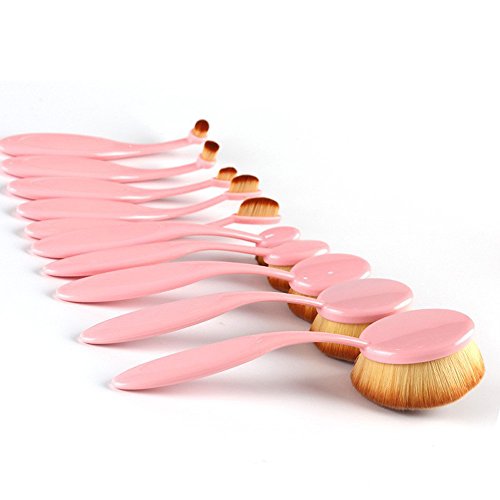 BeautyCoco 10 Pcs Pink Oval Makeup Brush Set Professional Foundation Brushes(Pink)