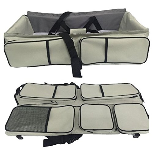 HIGH QUALITY MATERIALS-Made of 300D Oxford, Shoulders, every layer, zipper closure, easy to wipe clean,100% eco-friendly and biodegradable,reusable. This easy to carry bag combines a traditional diaper bag with a portable bassinet and change table!