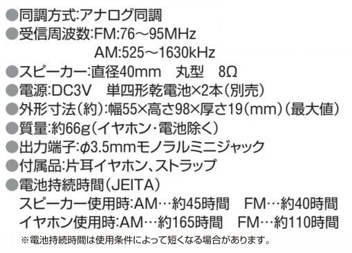 | 旅行や散歩に最適な携帯サイズのラジオです。スピーカーでもイヤホンでも聴くことができます。選局しやすい同調ランプ。聴き取りやすい40mmスピーカー。 |