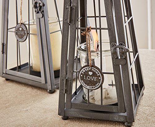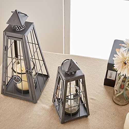 -. Binding : Kitchen -. Brand : SparkWorks -. Feature : Handcrafted of wrought iron with a trendy grey finish. / A simple, softly curved profile creates a perfect counterpoint to a variety of lamp styles. / Neat decor accent for your home. Group several for a glamorous display, or place it alone to take center stage on an accent table. / Large Lantern: 15.95"x6.57"x6.57". Small Lantern: 11.5"x4.8"x4.8". / Each unit comes with a glass candle holder for tealights and votives. -. IsAutographed : 0 -. Label : SparkWorks -. Manufacturer : SparkWorks -. ProductGroup : Home -. ProductTypeName : HOME -. Publisher : SparkWorks -. Studio : SparkWorks -. Title : SparkWorks Grey Lantern