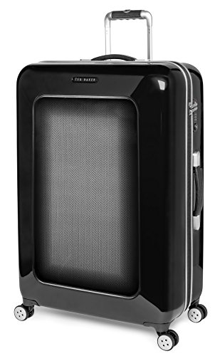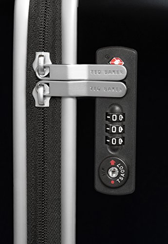 -. Feature : Contrast herringbone panel / Four smooth-glide spinner wheels / Two-way zip-around closure / TSA-approved combination lock / Aluminium detailing and scripted Ted Baker branding