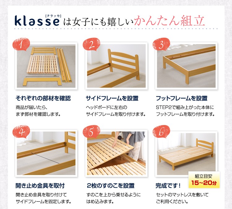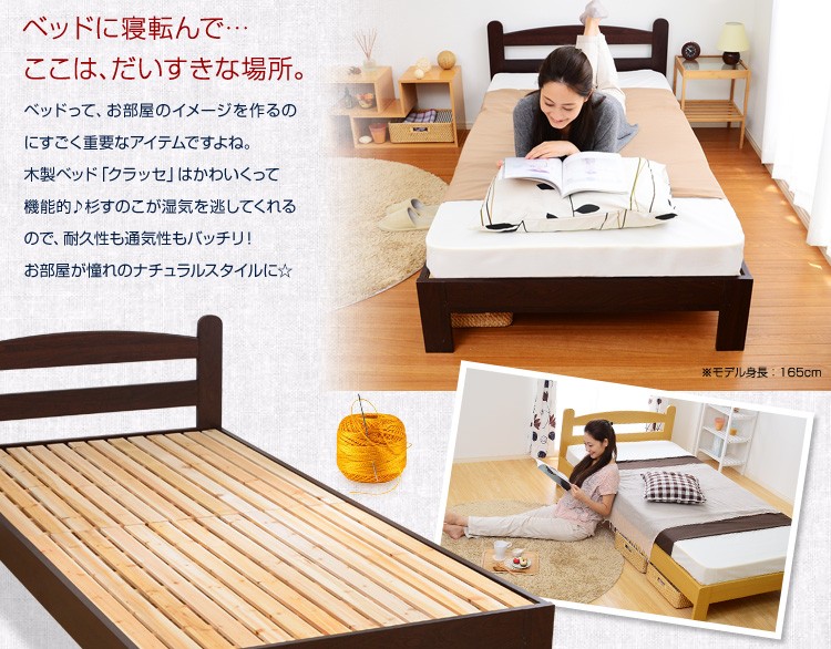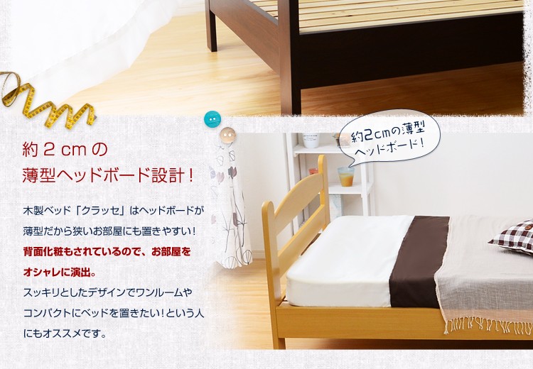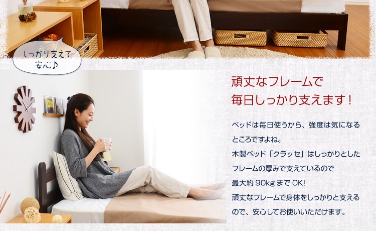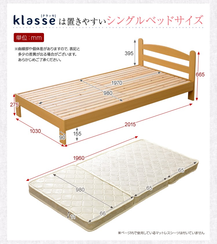 シンプル木製ベッド【Klasse-クラッセ-】シングル(三つ折りマットレス付き)