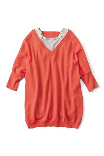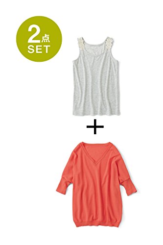 -. Title : (フェリシモ) リブ イン コンフォート 今日も瞬時に華やか 無敵のシャリ薄ニット&レースタンクセット グレー×オレンジ 482955-010