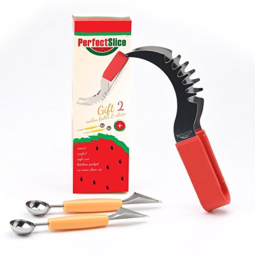 • FREE MELON BALLERS: With every purchase of the PerfectSlice watermelon slicer, we will send you not 1, but 2 completely FREE melon ballers as a bonus gift! They come in striking yellow color and they will help you create impressive fruit balls of melon, watermelon, dragon fruit or similar fruit, for a refreshing and fancy fruit salad!