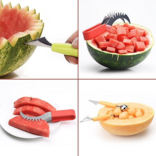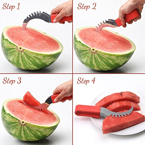 • THE EASIEST SLICER TOOL: Watermelons and melons are usually avoided because they’re not the easiest fruit to slice and serve. Our watermelon slicer will make this process as easy as eating a peach! Cut into the watermelon with no effort, grab the slice and serve. Cut vertically and horizontally to create nice watermelon cubes. Refresh your summer day with the juicy pieces of fruit your diet has been lacking!