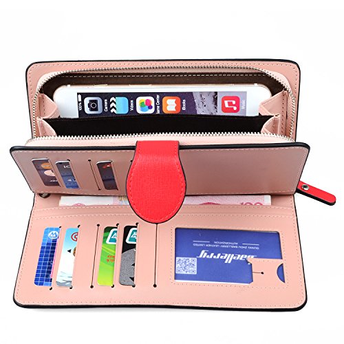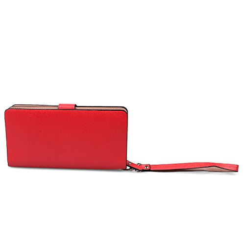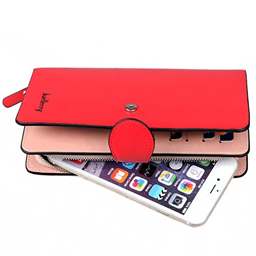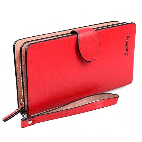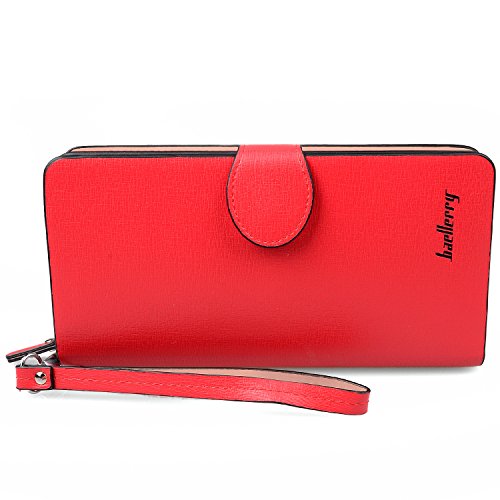 Gottowin Women's Leather Long Style Wallet Clutch Purse Handbag Card/Coin/Cash/Cellphone Holder Organizer Wristlet with Zipper & Snap Closure + Stylus pen (Red)