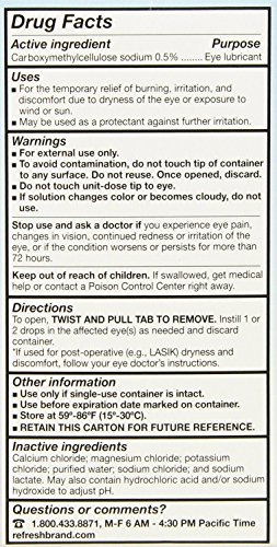 -. Binding : Health and Beauty -. Brand : Refresh Plus -. Feature : 100 vials per box / #1 Doctor recommended / Long-lasting relief plus protection / For mild to moderate dry eye including lasik dryness / No preservatives -. IsAdultProduct : 0 -. Label : Refresh Plus -. Manufacturer : Refresh Plus -. PackageQuantity : 1 -. ProductGroup : Health and Beauty -. ProductTypeName : HEALTH_PERSONAL_CARE -. Publisher : Refresh Plus -. Size : 200 -. Studio : Refresh Plus -. Title : Refresh Plus - Allergan Refresh - 200