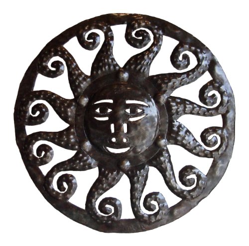 Le Primitif Galleries Haitian Recycled Steel Oil Drum Outdoor Decor, 14 by 14-Inch, Octopus Sun