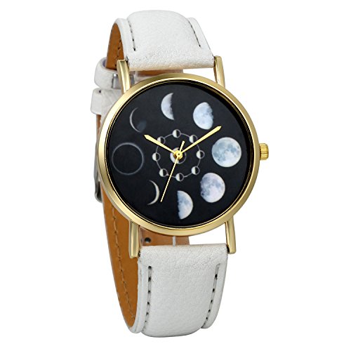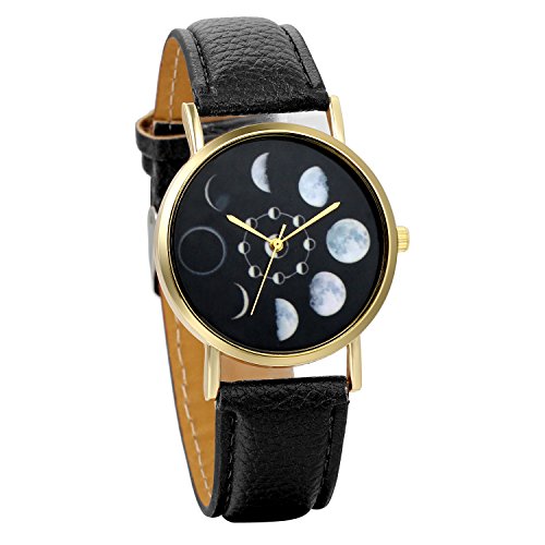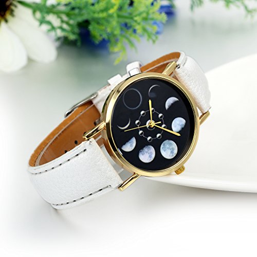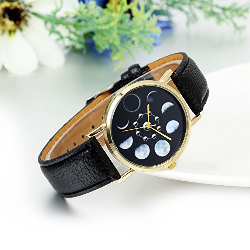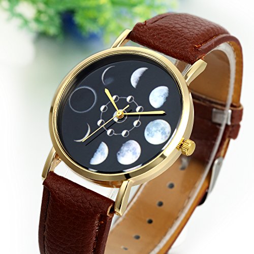 -. Title : JewelryWe 可愛い レディース レザーバンド 腕時計 オリジナル 月食 文字盤 クオーツ ファション カジュアル 通勤 通学
